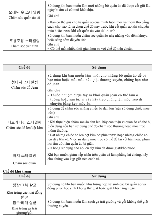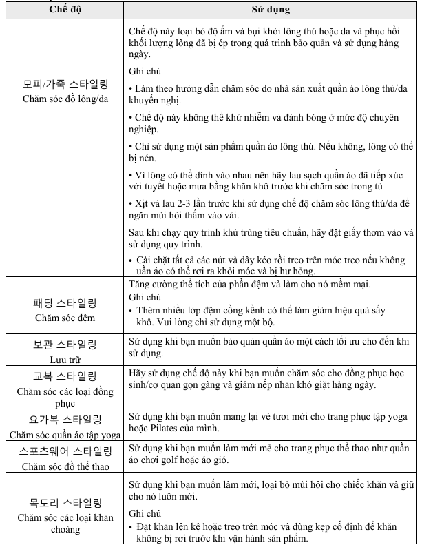 - Thiết lập bảo quản: Nếu bạn tiếp tục lưu trữ quần áo sau khi chăm sóc xong, quần áo có thể mất đi độ mềm mại. Sử dụng tính năng này để giữ cho quần áo bạn được bảo quản tốt nhất và luôn khô ráo qua đem khi bạn lấy ra dùng vào ngày hôm sau