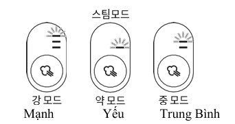 - Khi nhấn nút, chế độ phun hơi nước sẽ chuyển từ mạnh - trung bình-yếu.