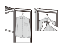 - Quần áo có thể rơi ra ngoài, vì vậy hãy treo chúng lên móc treo được thiết kế riêng cho tủ và cài nút trước khi ủi.