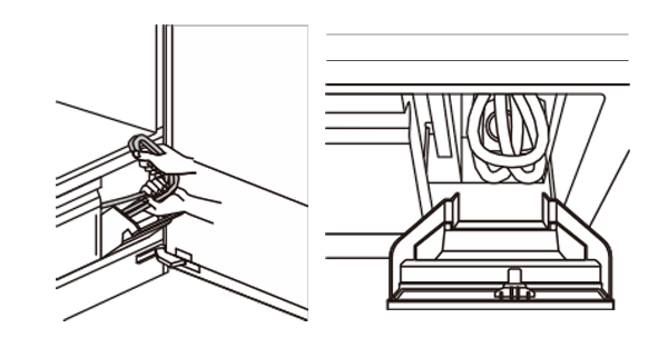 4. Nhấn và mở hộp bảo quản bàn ủi ở dưới cùng của tủ và lấy máy ra.