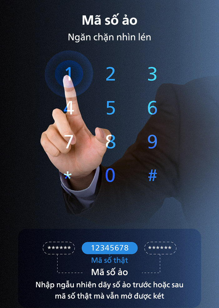 - Tính bảo mật cao: Mở két bằng mã số ảo: Philips SBX602 cho phép người dùng nhập ngẫu nhiên 32 số, trong đó bao gồm mật khẩu chính mà két vẫn mở. Mã số ảo này giúp người dùng tránh lộ mật khẩu chính ngay cả khi bị nhìn lén.Hệ thống chốt khoá chắc chắn: Philips SBX602 trang bị chốt khoá dày chắc chắn, bất khả xâm phạm với mọi hành vi cạy phá.Bảo mật kép: Két chỉ mở khoá ra khi nhập cùng lúc vân tay và mã số, 2 lớp vân tay hoặc 2 lớp mã số không trùng lặp.