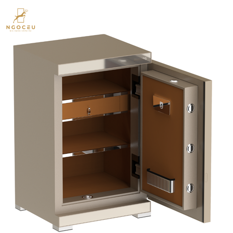 - Thiết kế chắc chắn, thông minh bên trong két: Ngăn chứa bí mật dưới cùng cho phép lưu trữ với không gian tương đối lớn không kém gì các ngăn phía trên.Các khay đựng đồ trang sức ở ngăn két trên được thiết kế tối ưu không gian, giúp lưu trữ và phân loại trang sức một cách tiện lợi. Nội thất ngăn két trên sử dụng chất liệu bọc da cao cấp đảm bảo các món đồ trang sức được nâng niu nhất.Bên cạnh đó két sắt còn thiết kế chân sạc cung cấp hệ thống điện cho két sắt phòng trường hợp hết pin.