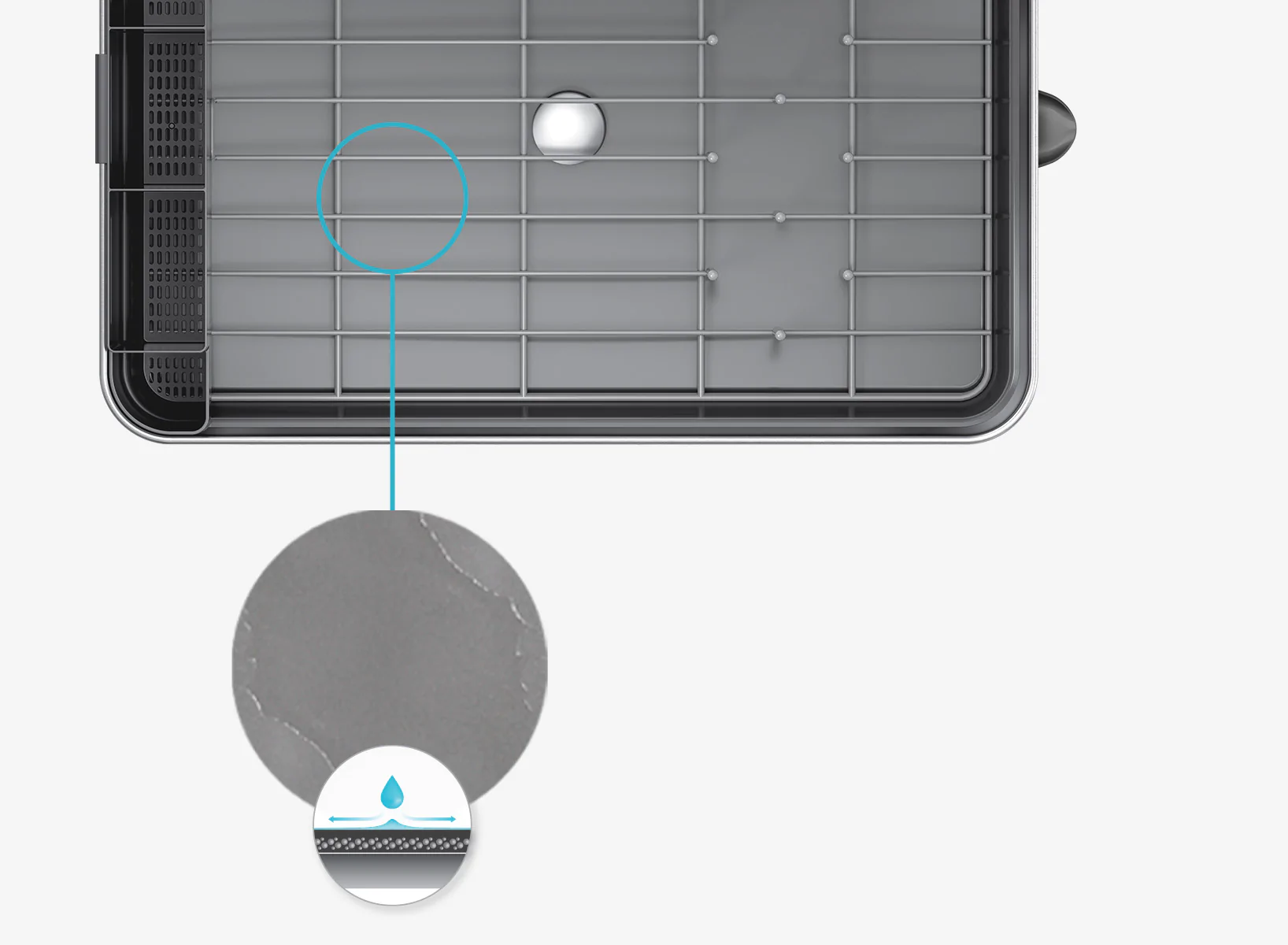 - Lớp phủ ưa nước trên khay nhựa làm cho nước lan rộng để khay khô nhanh hơn và ngăn tích tụ cặn. Rất sạch sẽ và hiệu quả.