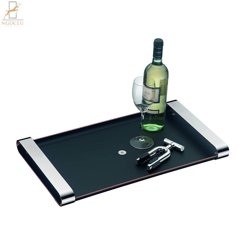 Với bề mặt làm bằng gỗ sơn mài đen và tay cầm làm bằng Cromargan đánh bóng, khay có thể được sử dụng phổ biến.
