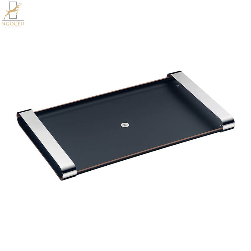 Khay đựng đồ uống WMF Tablett Holz schwarz Club không có khung với sự kết hợp phong cách giữa các vật liệu: gỗ và thép không gỉ. Có tay cầm.