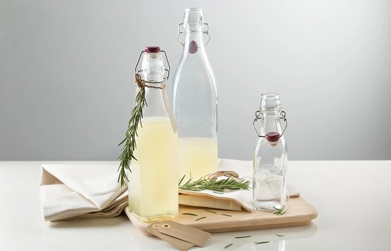 Chai thủy tinh với thiết kế khóa chắc chắn, hạn chế dung dịch bên trong tiếp xúc với không khí. Giúp bảo quản tốt hơn các loại nước hoa quả, sữa hay bảo quản dầu, giấm.