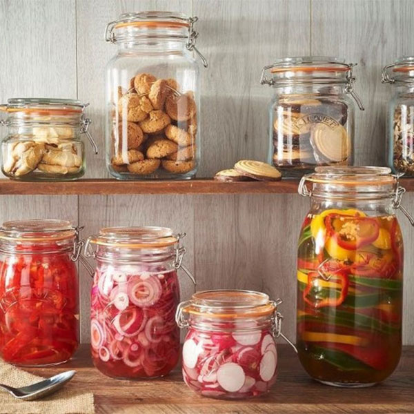 Hũ thuỷ tinh vuông kilner là một trong những sản phẩm nổi bật nhất, chuyên dùng để đựng các loại thực phẩm khô, mứt hay tương. Tên “Kilner” được dập nổi phía trước cùng phần nắp được thiết kế có vòng đệm silicone giúp bạn dễ dàng bảo quản thực phẩm. Thiết kế đặc trưng cùng chất liệu thuỷ tinh cao cấp dễ dàng sử dụng và bền, góp phần tạo nên điểm nhấn cho gian bếp nhà bạn.