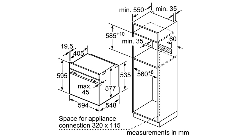 - Kích thước lắp đặt (C x R x S) 585 - 595 x 560 - 568 x 550 mm