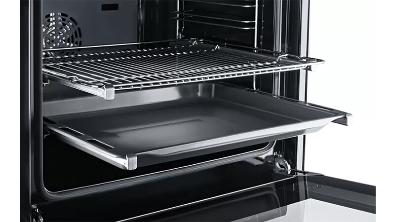 - Cửa lò nướng giờ đây trở nên tiện lợi hơn bao giờ hết: Cơ chế giảm chấn đặc biệt giúp cửa lò không bị đóng sầm lại. Khi bạn nhẹ nhàng đẩy cửa đóng lại, nó sẽ dừng lại ngay trước khi đóng và sau đó tự tắt một cách nhẹ nhàng và yên tĩnh, do đó đảm bảo tuổi thọ lâu dài cho cả lò nướng và cửa lò của bạn.