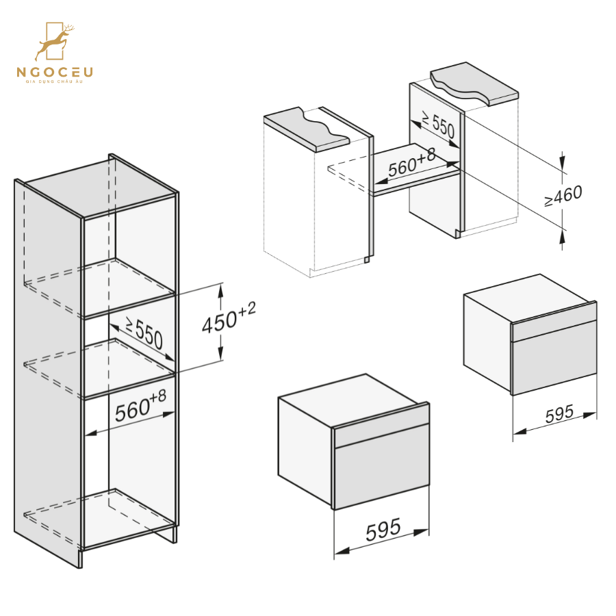 - Kích thước hộc lắp (W x H x D): 560–568 x 450–452 x 550 mm