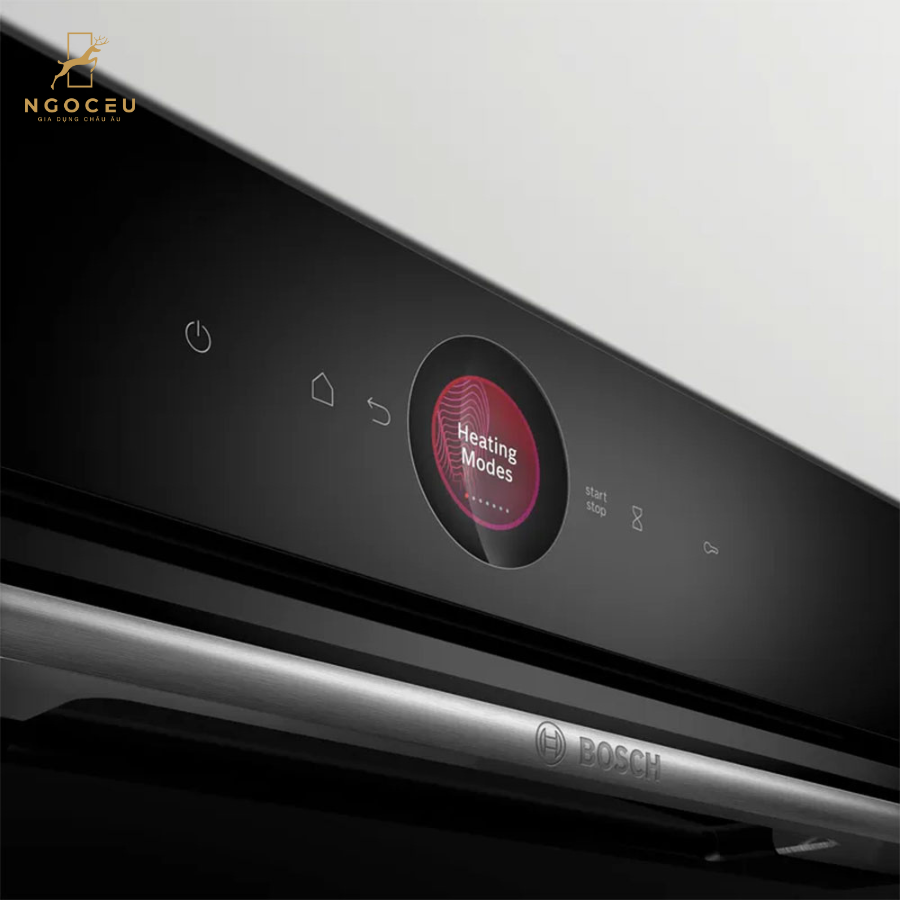 - Bảng điều khiển cảm ứng TFT với vòng điều khiển kỹ thuật số: Lò nướng Bosch được trang bị bảng điều khiển cảm ứng TFT hiện đại, kết hợp với vòng xoay điều chỉnh, mang đến trải nghiệm sử dụng vô cùng tiện lợi và trực quan. Việc nướng, rã đông hay hâm nóng thực phẩm trở nên đơn giản hơn bao giờ hết nhờ vào bảng điều khiển này.