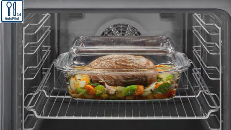 - Cửa lò nướng giờ đây trở nên tiện lợi hơn bao giờ hết: Cơ chế giảm chấn đặc biệt giúp cửa lò không bị đóng sầm lại. Khi bạn nhẹ nhàng đẩy cửa đóng lại, nó sẽ dừng lại ngay trước khi đóng và sau đó tự tắt một cách nhẹ nhàng và yên tĩnh, do đó đảm bảo tuổi thọ lâu dài cho cả lò nướng và cửa lò của bạn.