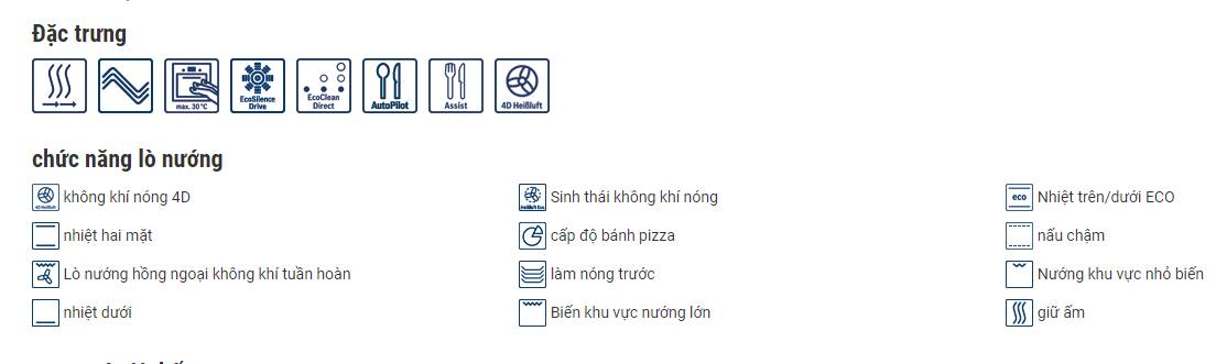 + Các chế độ nướng: 4D hot air (Khí nóng 4D)