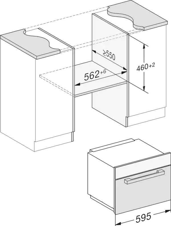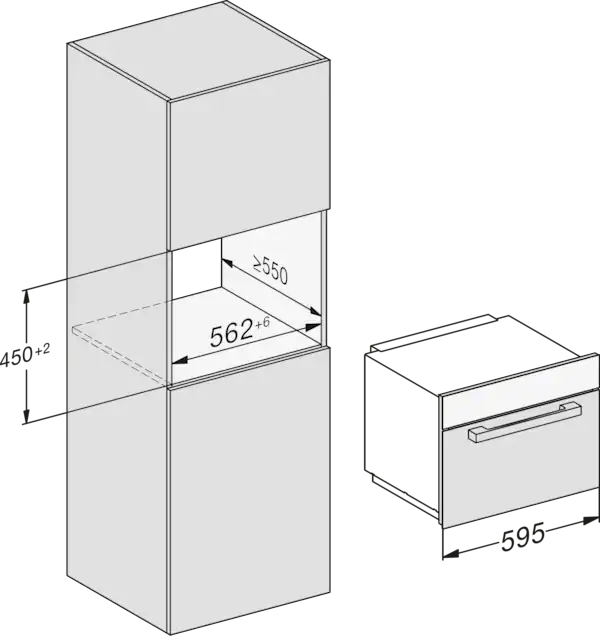 - Kích thước hốc (W x H x D) tính bằng mm: 562-568x450-452x550
