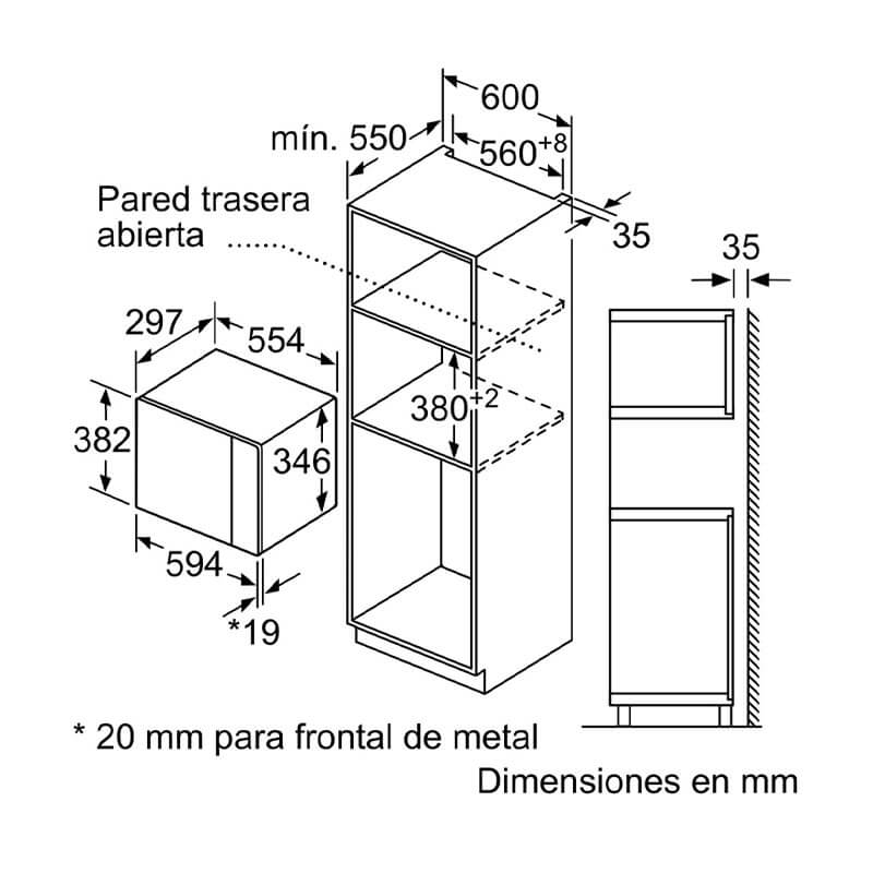 - Kích thước lắp đặt lò vi sóng: 362 x 560 x 300 mm