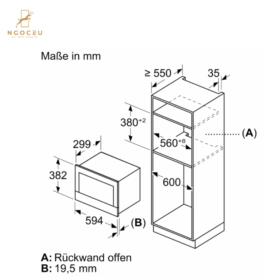 - Chiều rộng ngăn tối thiểu: 560 mm