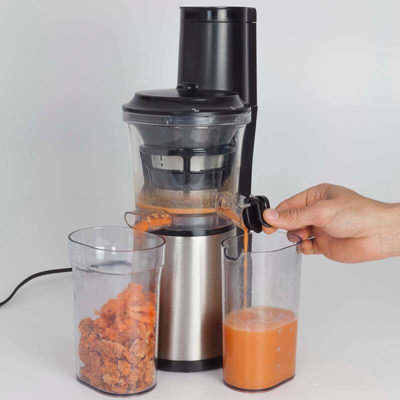 Máy ép trái cây chậm thiết kế mỏng với ứng dụng thép không gỉ chất lượng cao. Để có những loại nước trái cây thơm ngon, tốt cho sức khỏe với hương vị tự nhiên từ trái cây, rau và thảo mộc. Ép trái cây nhẹ nhàng nhờ vào RPM thấp hơn (50-60 vòng / phút).