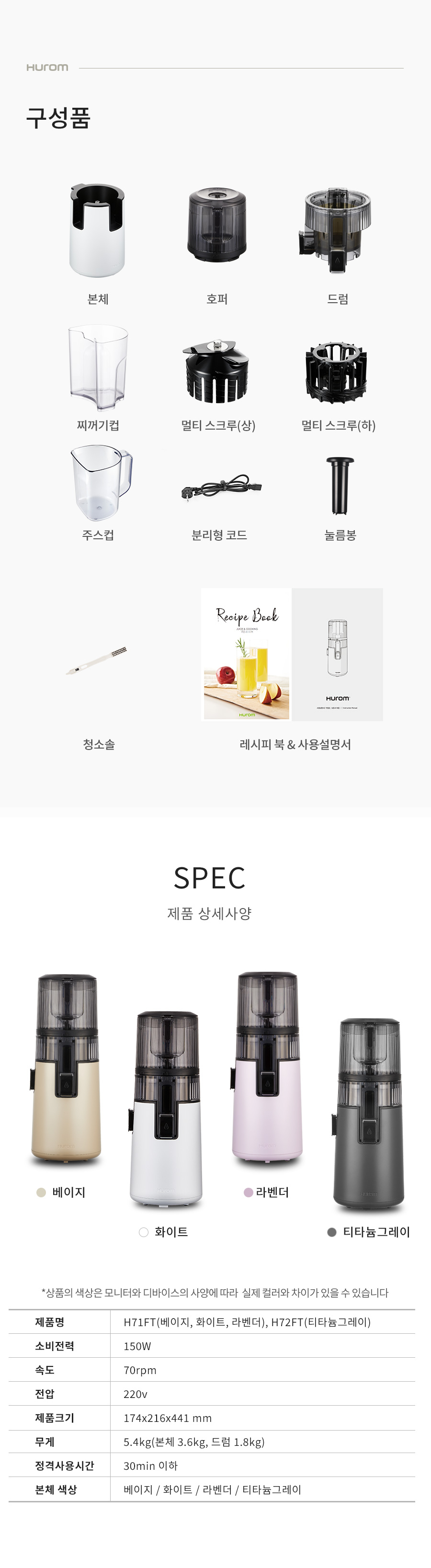- Tên sản phẩm/tên mẫu Máy ép trái cây Hurom Series 3 màu_H410