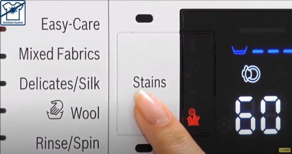 - Nhờ tính năng tùy chọn Intensive cleaning giúp cường độ giặt tăng lên cùng thời gian giặt tăng lên thêm 30 phút giúp loại bỏ vết bẩn cứng đầu nhất