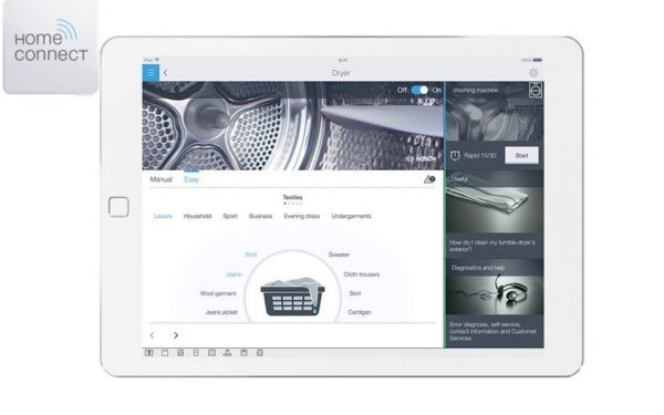 - Kết nôi máy giặt với smartphone của bạn. Lựa chọn chương trình giặt hiện giờ thật dễ dàng nhờ home connect. Bạn chỉ cần điền màu sắc, chất liệu và độ bẩn của quần áo, mọi công việc còn lại hay để máy tự thực hiện