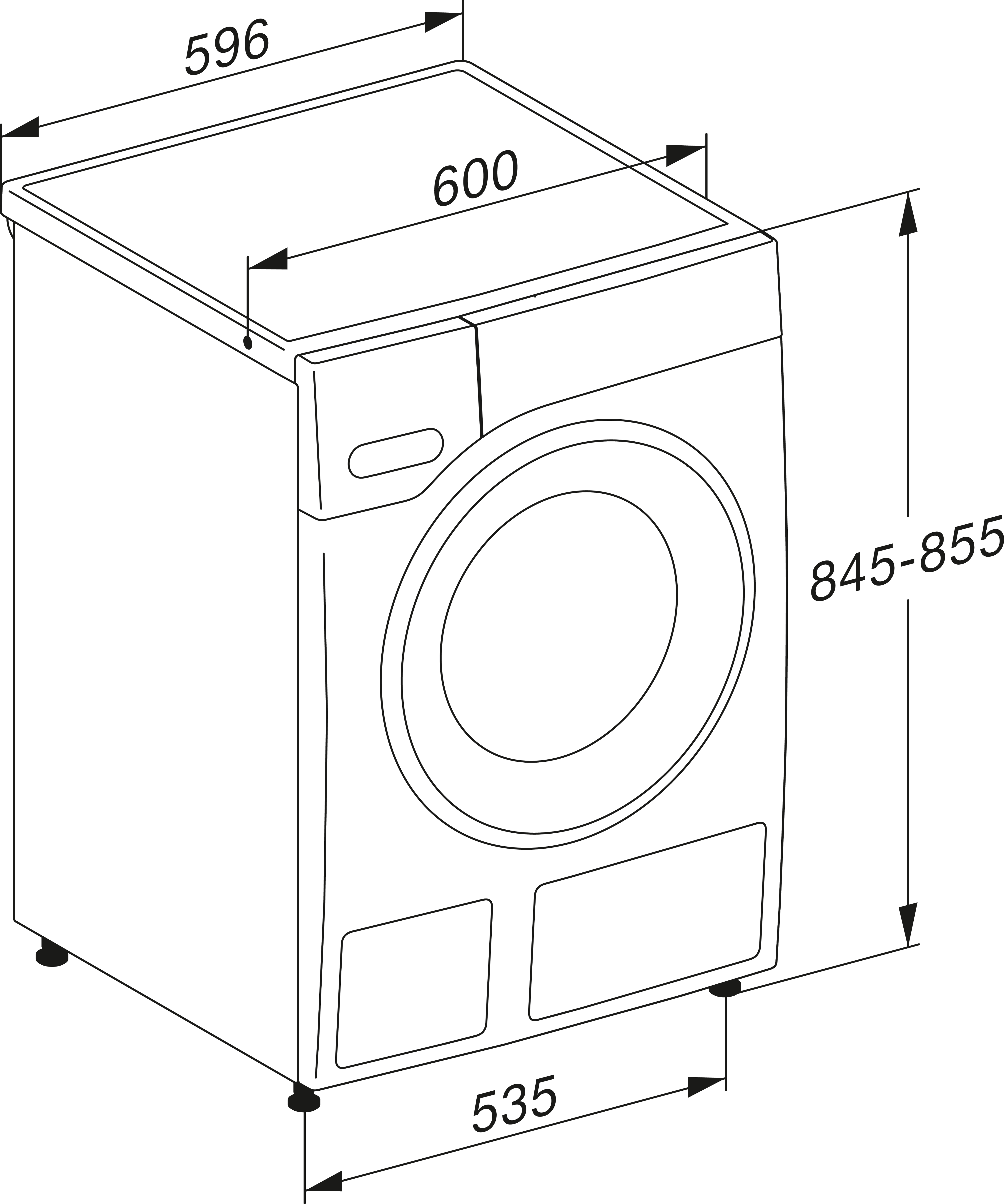 - Kích thước (H x W x D) tính bằng mm 850x596x636