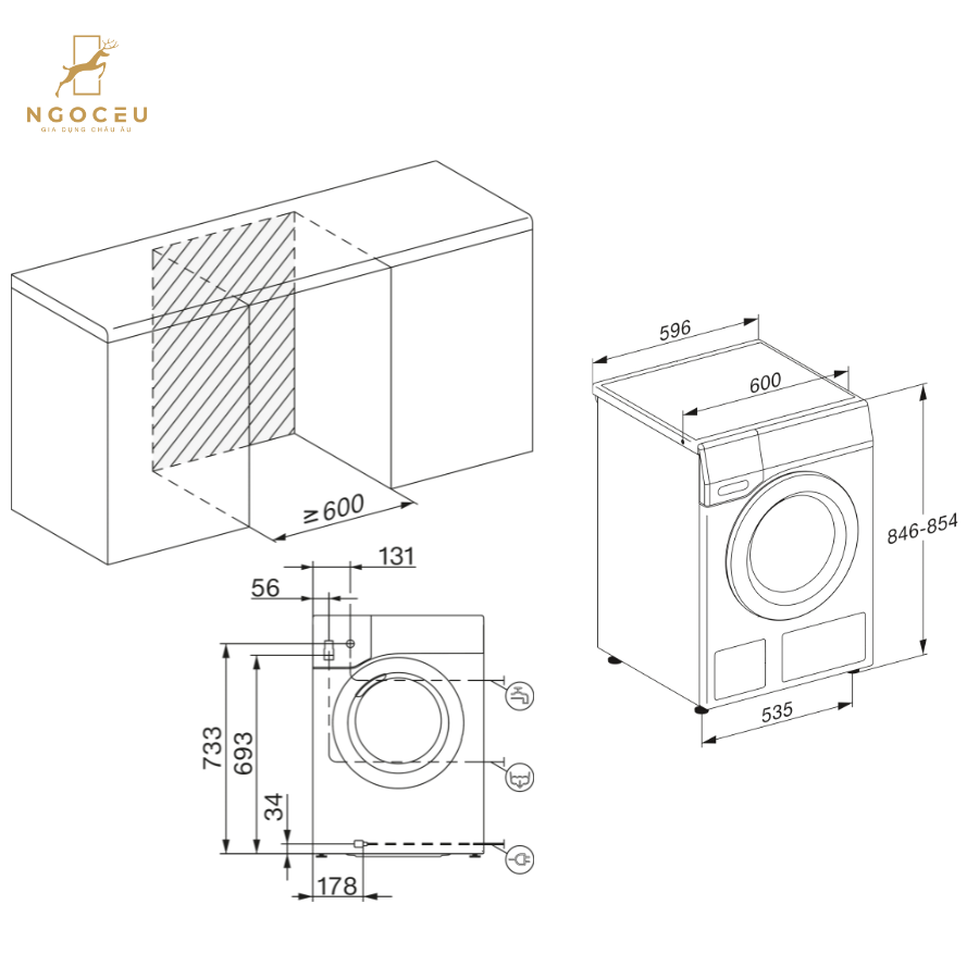 - Loại máy: Máy giặt sấy kết hợp (máy sấy ngưng tụ, làm mát bằng nước)