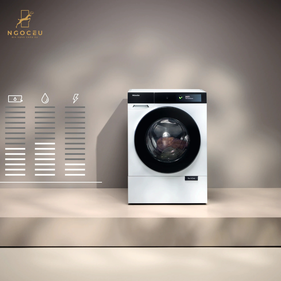 - Tiết kiệm tới 40% chất tẩy rửa với TwinDos®⁸: Hệ thống TwinDos® tích hợp sẽ tự động phân phối lượng chất tẩy rửa chính xác – dựa trên khối lượng, loại vải và mức độ bẩn. Nhờ đó, bạn tiết kiệm tới 40% lượng chất tẩy rửa và giặt giũ thân thiện hơn với môi trường.