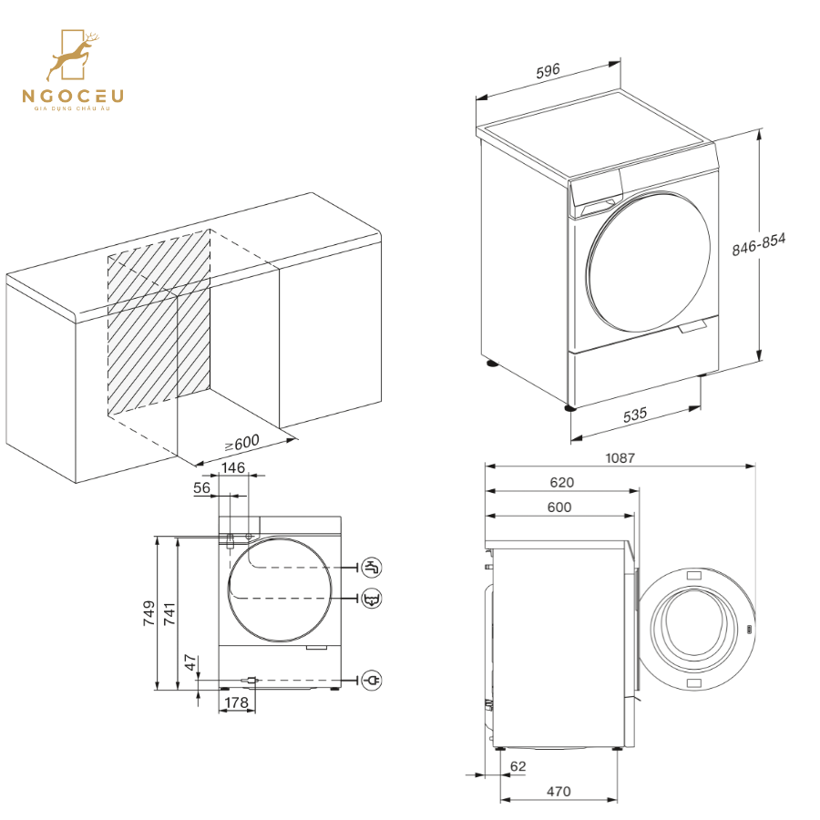 - Kích thước (CxRxS): 850 x 596 x 620 mm