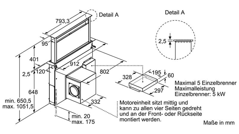 Máy hút mùi âm Bosch DDA097G50 Để thiết kế nhà bếp tự do và linh hoạt, Bosch đã phát triển nhiều loại máy hút mùi trên bàn khác nhau - chúng được tích hợp trực tiếp trên và trong bếp nấu ăn. Hệ thống thông gió bàn có thể mở rộng.