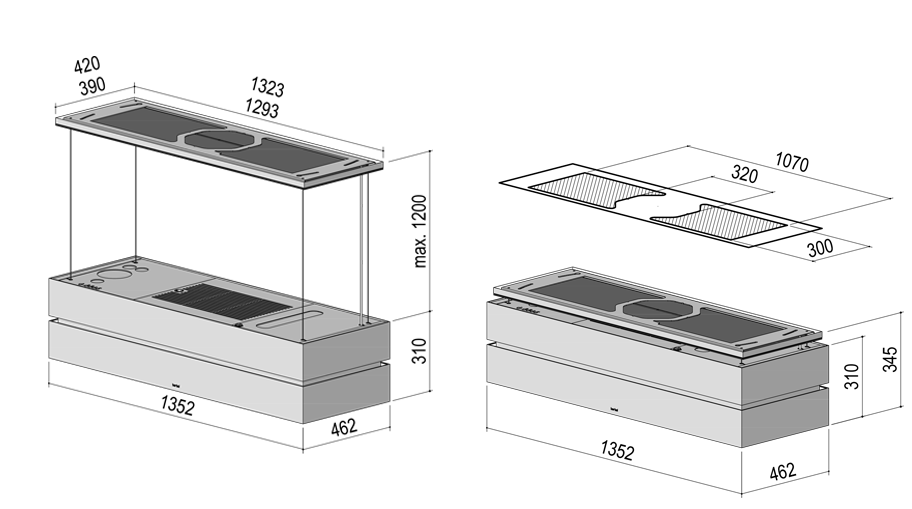 Chức năng nâng 1.200 mm: cho khoảng không và khoảng cách tối ưu đến bếp nấu ăn