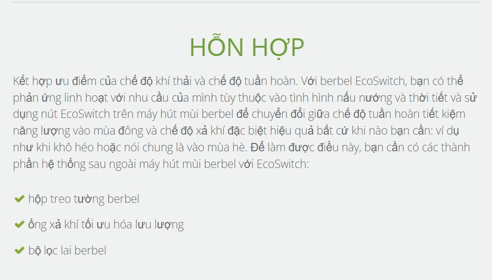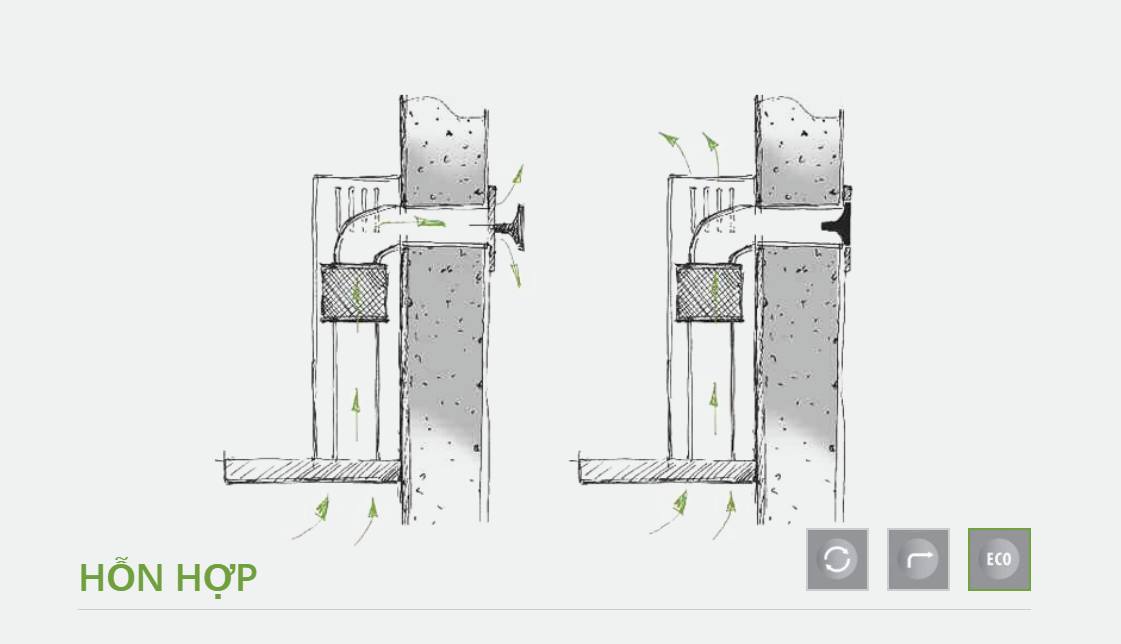 - Chế độ hoạt động: EcoSwitch, Khí thải, không khí tuần hoàn