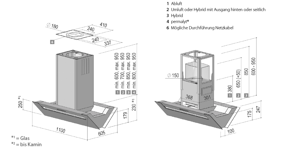 - Phần mở rộng ống khói cho chiều dài trục > 950 mm theo yêu cầu.
