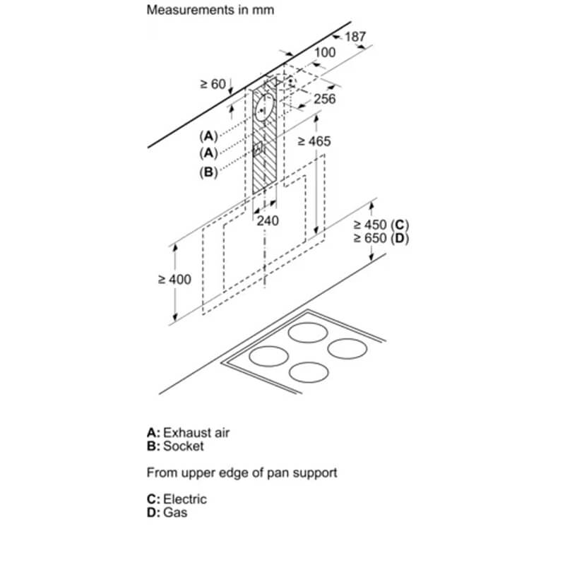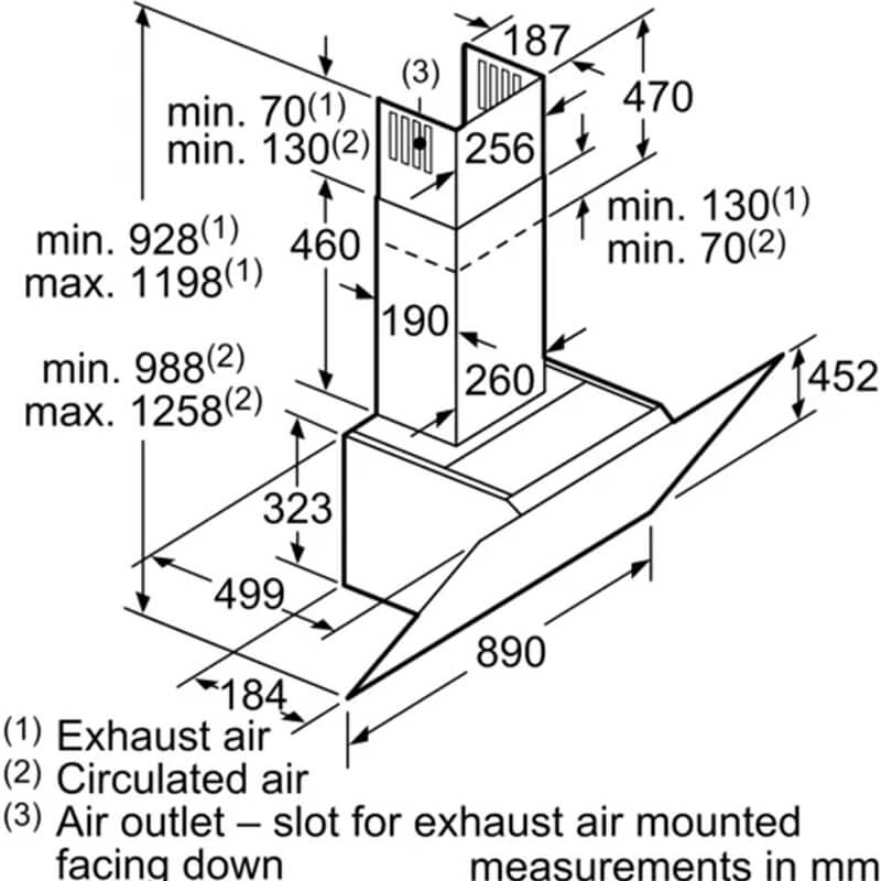 – Kiểu dáng lắp đặt: Hút mùi vát nghiêng Bosch