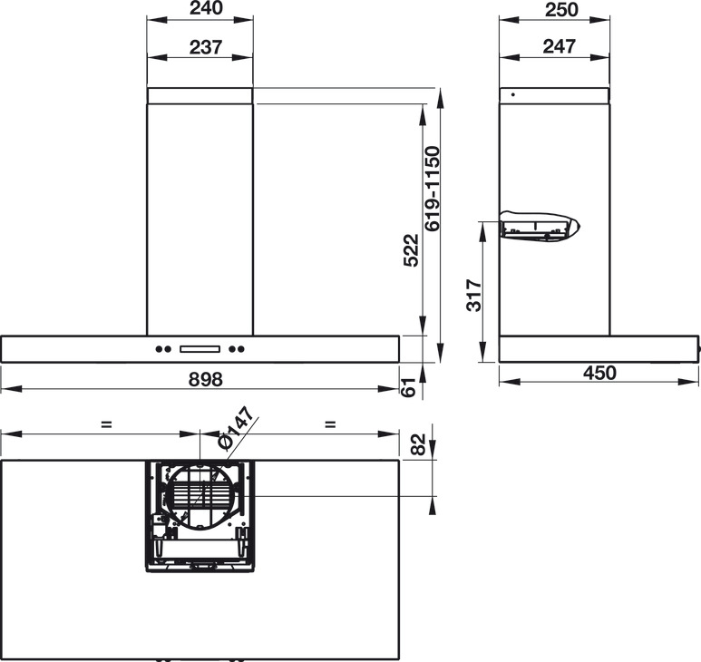 - Kích thước sản phẩm: ( Rx Sx C) 898 x 450 x 619–1150mm