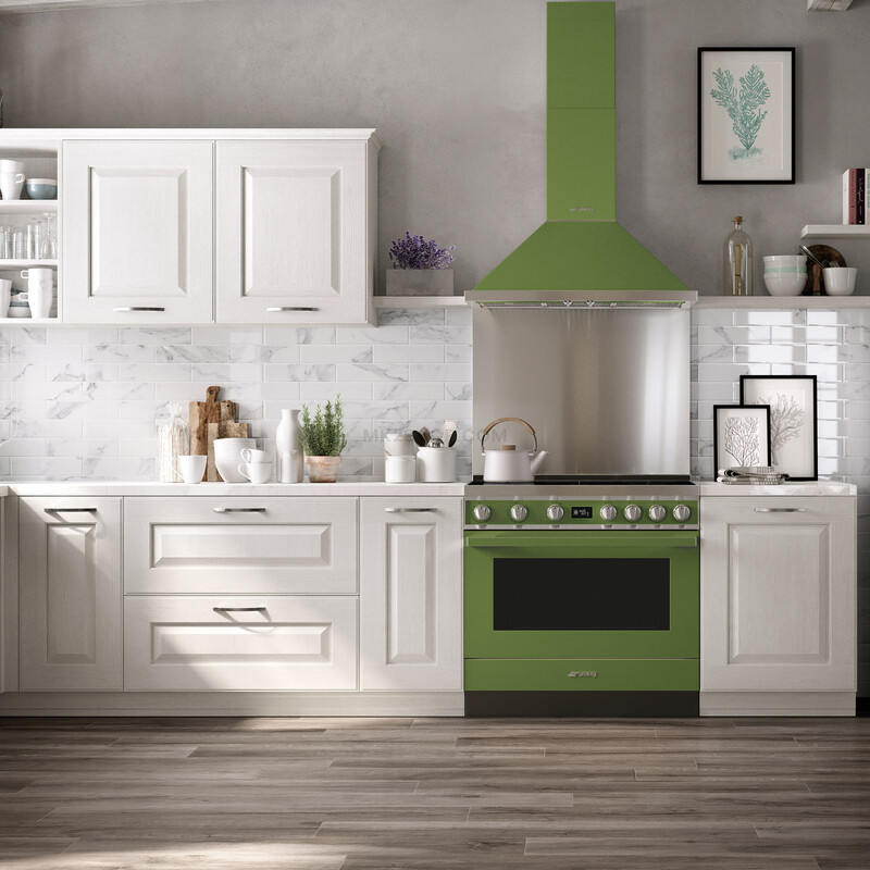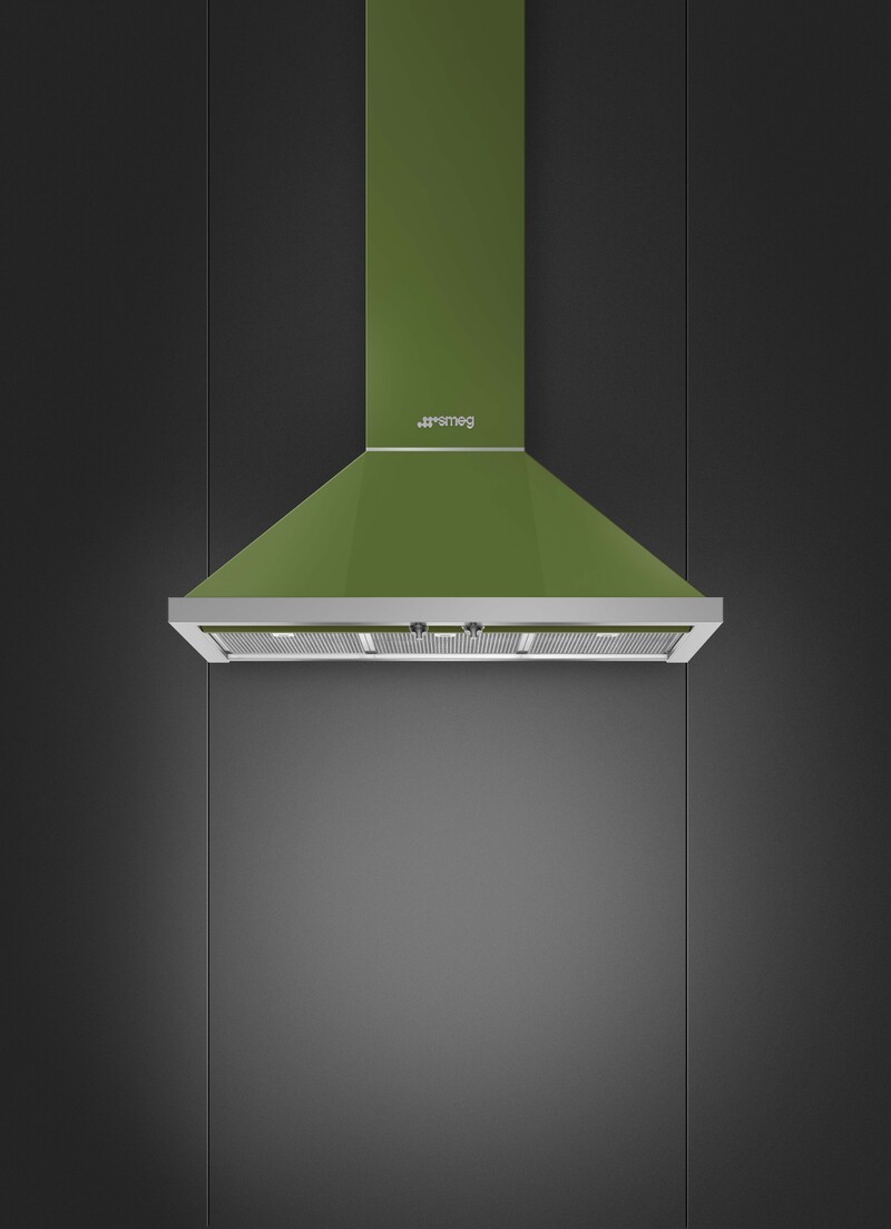 Máy hút mùi Smeg KPF9O thuộc dòng Portofino màu olive sáng có khả năng lắp thêm bộ lọc than, cho phép máy hoạt động ở chế độ tuần hoàn không khí. Điều chỉnh tốc độ được thực hiện ở ba cấp độ, cũng có một chế độ chuyên sâu để bay hơi đặc biệt phong phú. Mô hình này sẽ phù hợp một cách hữu cơ với nội thất nhà bếp hiện đại cùng với bếp nấu ăn Smeg CPF9GMO