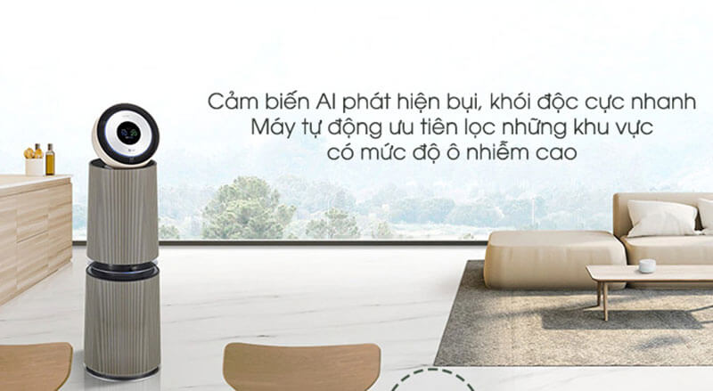 – Máy lọc không khí LG thiết kế trụ tròn và nhiều lỗ hút khí được bố trí 360 độ xung quanh thân máy. Nhờ kiểu thiết kế này mà máy có khả năng hút không khí ô nhiễm từ mọi hướng. Bộ đẩy khí sạch và cửa gió sẽ tối ưu khả năng phân bổ khí sạch tới mọi góc của căn phòng, thậm chi cả những khu vực tầm thấp cho trẻ nhỏ.