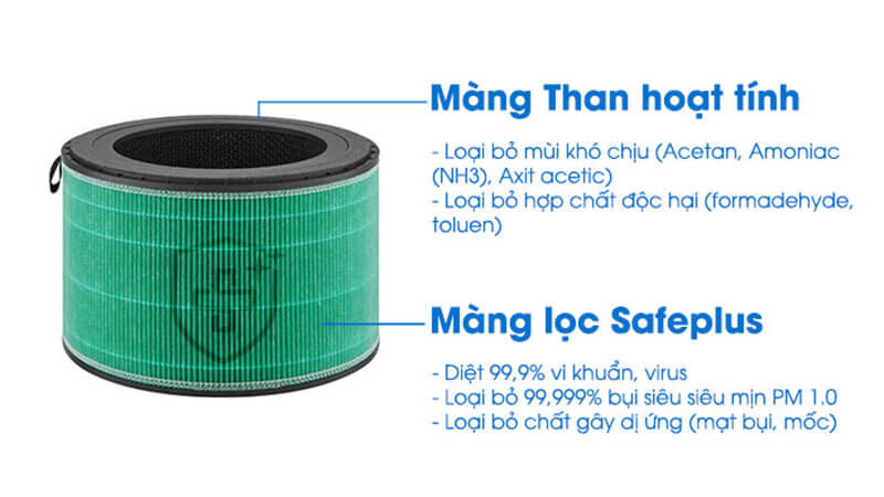 – Loại bỏ đến 99,9% bụi min kích thước chỉ 1 micromet.