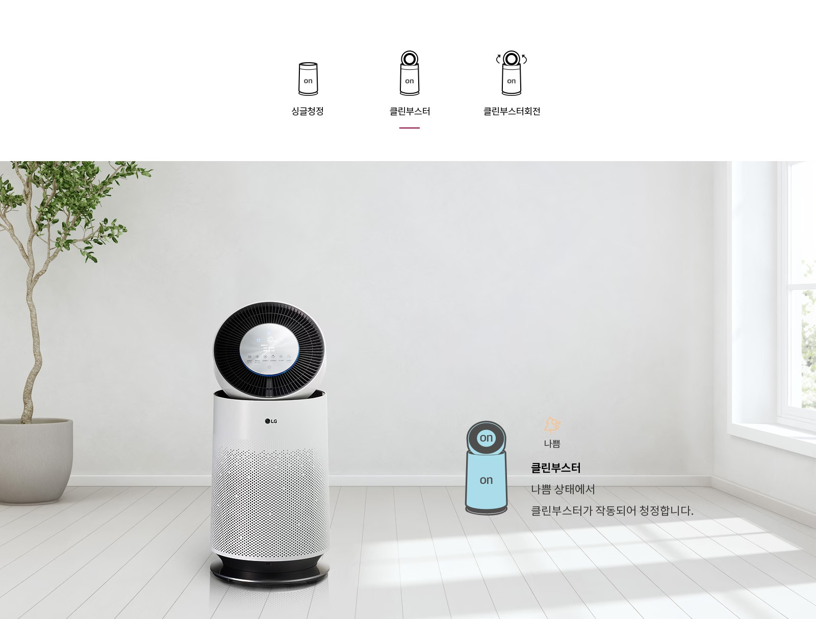 - Tăng cường làm sạch nhanh hơn 24% khi bạn cần làm sạch nhanh Clean Booster, gửi không khí sạch lên đến 7,5m, làm sạch không khí trong nhà nhanh hơn.