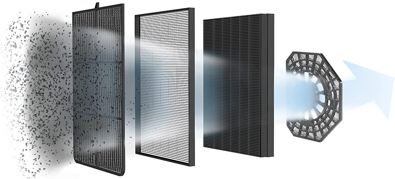 – Với bốn cấp độ lọc mạnh mẽ: Bộ lọc trước, Bộ lọc than hoạt tính, Bộ lọc dị ứng + và Bộ lọc NanoCaptur +