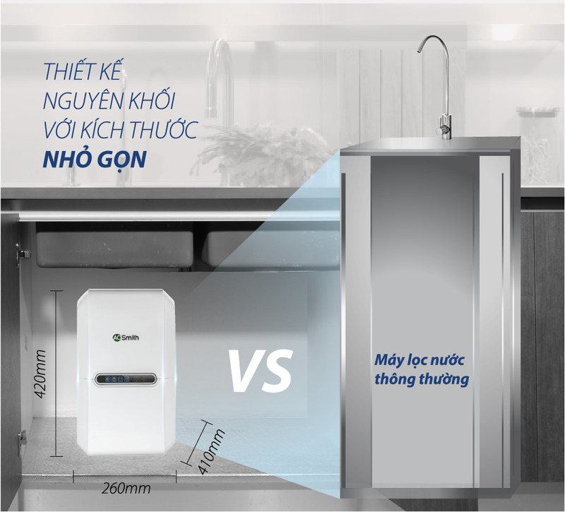 - Thiết kế nhỏ gọn, tiện nghi phục vụ cho việc lắp đặt dưới chậu rửa, phù hợp với mọi gia đình, giúp nguồn nước của gia đình bạn luôn tinh khiết.