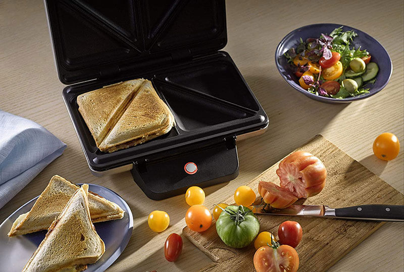Sản phẩm có 2 khay có thể làm 2 bánh sandwich đủ các kích cỡ từ các lát bánh mì nướng Size tiêu chuẩn đến Size XXL.