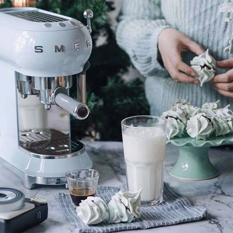 Cuối cùng, bạn có thể chuẩn bị một ly cà phê espresso đậm đà, một ly cappuccino kem hoặc một ly latte macchiato thơm ngon ngay tại nhà mình với máy pha cà phê espresso mới của Smeg. Có thể sử dụng cả cà phê xay và cà phê hạt bạn bổ xung thêm chiếc máy xay hạt cà phê Smeg.