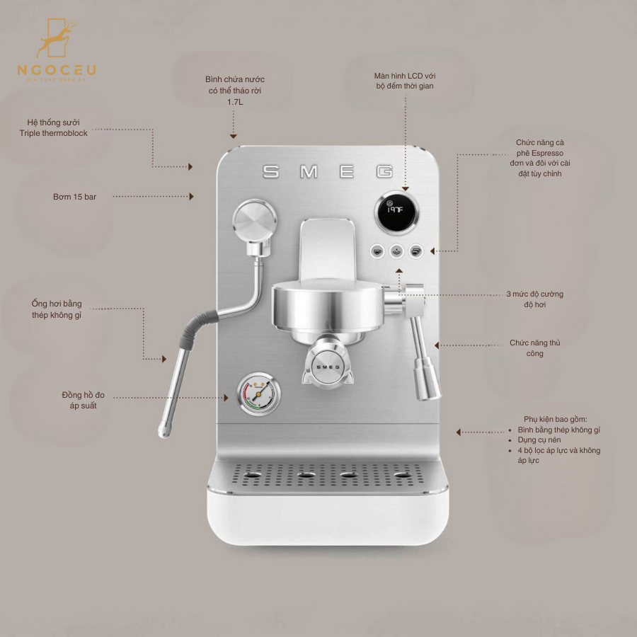 Đặc điểm nổi bật của máy pha cà phê Smeg EMC02BLMEU: