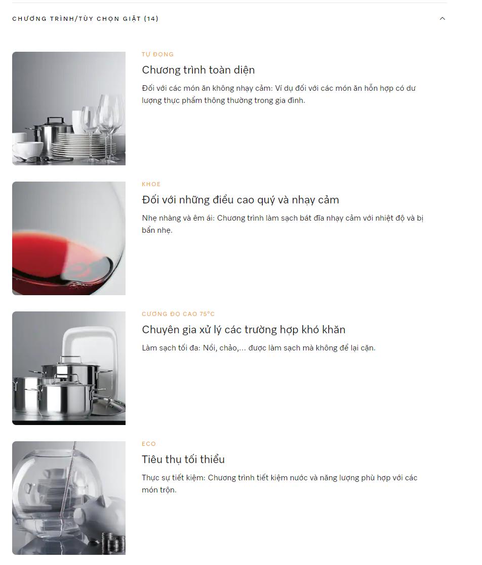 CHƯƠNG TRÌNH/TÙY CHỌN CHO MÁY