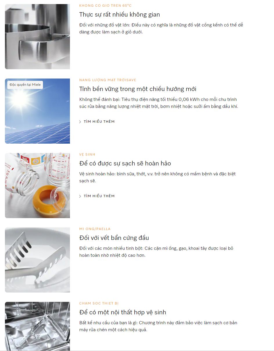 - Rửa chén thoải mái: Nhờ chương trình vệ sinh hoặc chuyên sâu kết hợp với PowerDisk hoặc UltraTabs, hơn 99,9% vi-rút (ví dụ: corona, cúm hoặc norovirus) được loại bỏ một cách đáng tin cậy. Điều này đã được xác nhận bởi một thử nghiệm của Viện Vệ sinh và Virus học. Đại học Khoa học Ứng dụng Rhine-Waal cũng xác nhận hiệu suất làm sạch vệ sinh vượt trội của máy rửa bát Miele*. Trong thử nghiệm vệ sinh, hơn 99,99% vi khuẩn (Enterococcus faecium) được loại bỏ bằng AutoDos và PowerDisk trong chương trình ECO và QuickPowerWash 65°C. Và chương trình vệ sinh đã giảm lượng vi khuẩn (Enterococcus faecium hoặc Micrococcus luteus) ít nhất là 10.000 trong thử nghiệm, ngay cả khi không dùng chất tẩy rửa.