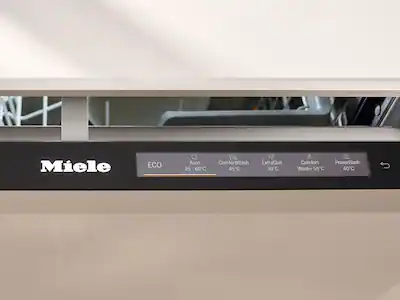 - Vận hành máy rửa bát giống như cách bạn làm với điện thoại thông minh: các chương trình và tùy chọn rửa được hiển thị trên màn hình màu TFT lớn dưới dạng các biểu tượng có văn bản trong giao diện ứng dụng. Bạn có thể thực hiện lựa chọn bằng cách chạm ngón tay hoặc cuộn qua các chương trình và tùy chọn bằng cách vuốt sang trái. Màn hình TFT được tích hợp vào loại vỏ mới dành cho máy rửa chén, kết hợp thao tác thuận tiện với thiết kế tối giản.