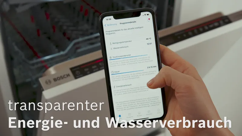 - Nhiều hộ gia đình muốn máy rửa chén của họ có kết quả làm sạch và sấy khô tốt hơn và thường có thời gian chạy ngắn hơn. Nhờ chương trình Thông minh, máy rửa chén của bạn sẽ điều chỉnh quy trình rửa. Sau khi chương trình kết thúc, bạn có thể đánh giá kết quả giặt và sấy cũng như thời lượng của chương trình thông qua ứng dụng Home Connect. Sau đó, máy rửa chén sẽ điều chỉnh cài đặt và đưa ra nhiều lựa chọn thay thế khác nhau, chẳng hạn như loại tiết kiệm năng lượng. Ngoài ra, chương trình còn cung cấp cho bạn sự minh bạch hoàn toàn về mức tiêu thụ nước và năng lượng.