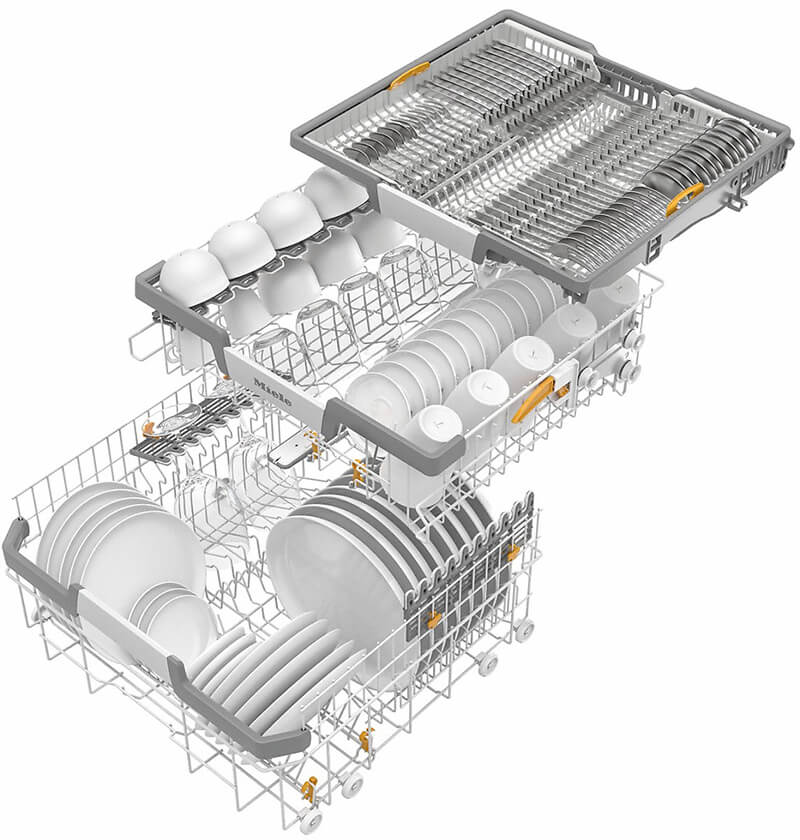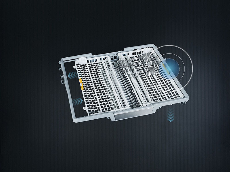Ngoài hệ thống các giỏ linh hoạt Máy Rửa Bát Miele G 7310 SCi AutoDos Bán Âm còn được trang bị khay trên cùng với thiết kế cho phép thay đổi linh hoạt để tăng không gian cho các vật dụng có kích thước khác nhau.