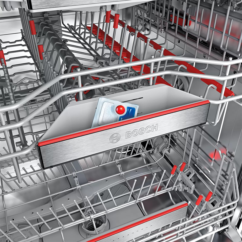 Hỗ trợ định lượng được sử dụng để tối ưu hóa hoạt động của viên rửa. Máy tính bảng được thả thẳng vào một hộp đựng đặc biệt ở giỏ phía trên, nơi nó sẽ tan dần và có kiểm soát. Khi được trộn với nước đúng cách, chất tẩy rửa sẽ tác động lên bát đĩa với lực lớn hơn, đảm bảo kết quả rửa hoàn hảo cho mỗi lần rửa.