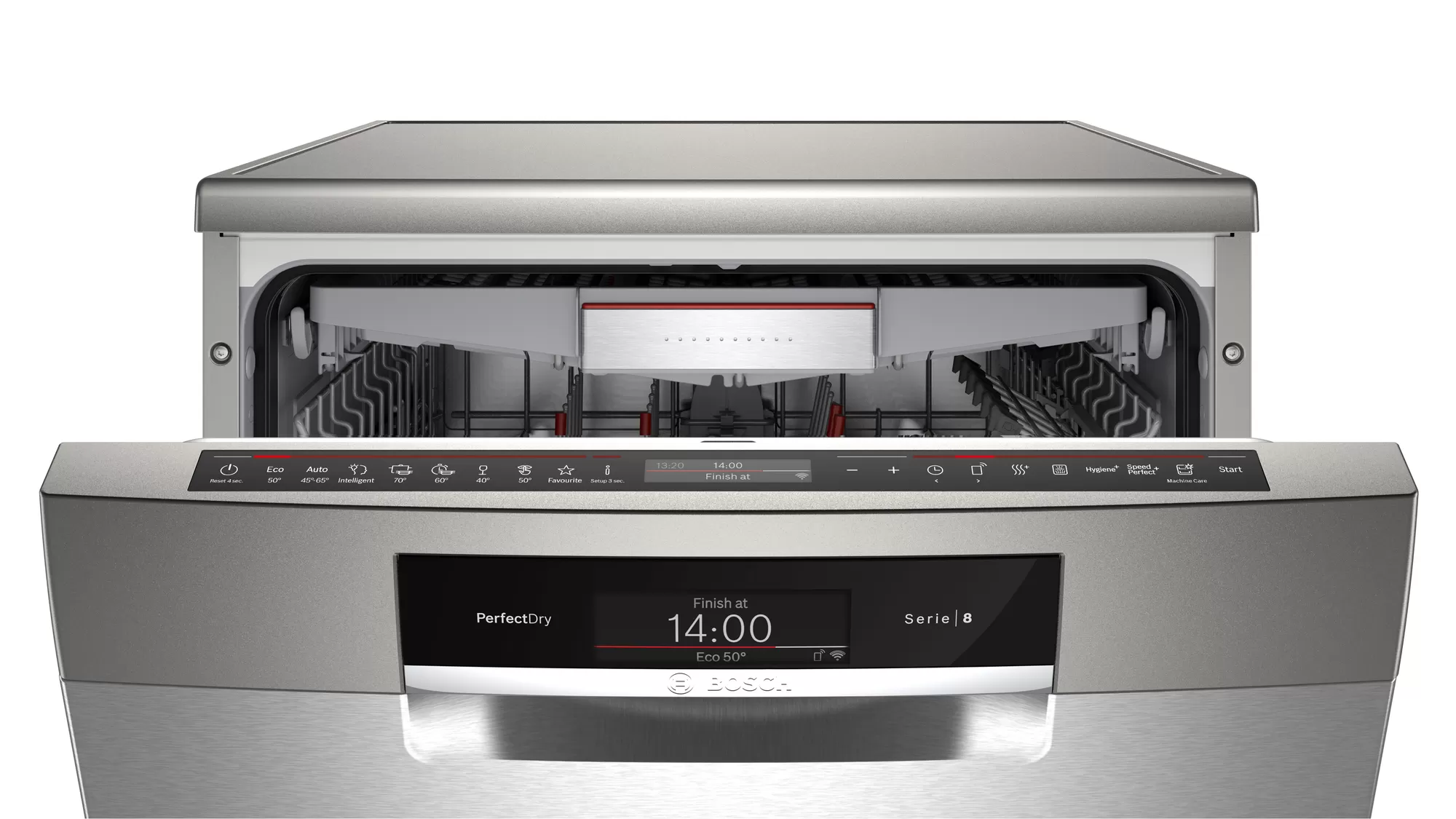 - Tạm biệt các chất cặn bã như bông ngô khô trong bát ngũ cốc: Vùng Làm sạch Thêm với 3 vòi phun nước xoay cho phép làm sạch đặc biệt triệt để. Bát đĩa của bạn sẽ sạch hơn với lượng nước gấp ba lần mà không cần thêm chất tẩy rửa hay tăng nhiệt độ. Khu vực Làm sạch Thêm có thể dễ dàng được kích hoạt thông qua công tắc bật và tắt ở giỏ phía trên và ngay cả những món ăn bẩn và đồ khô cũng có thể sạch hoàn toàn.